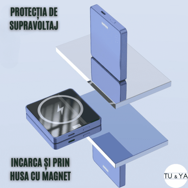 Baterie Externa Wireless 10.000 mAh, Magsafe, prin cablu 20w, TU&YA