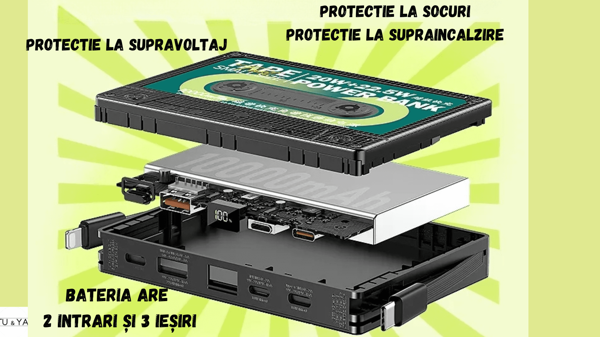 Siguranța este prioritatea noastră principală, iar power bank-ul nostru dispune de protecție împotriva supraîncărcării, supraincalzirii și scurtcircuitelor. Puteți încărca dispozitivele cu încredere, știind că sunt în mâini sigure. 🔒🛡️
